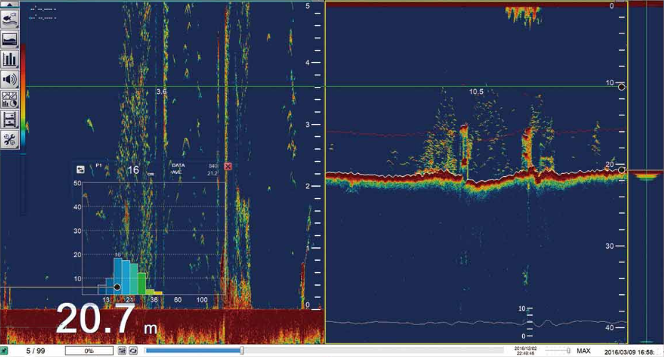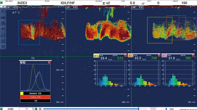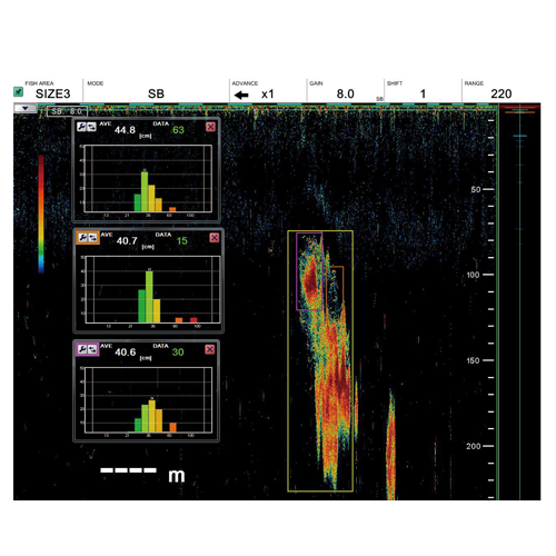 FSS3-BB là sản phẩm chủ lực trong việc nhận dạng loài. Với khả năng hiển thị cả tần số thấp và cao—có thể sử dụng riêng lẻ hoặc kết hợp—nó giúp ước tính số lượng các loài khác nhau trong một đàn cá.
